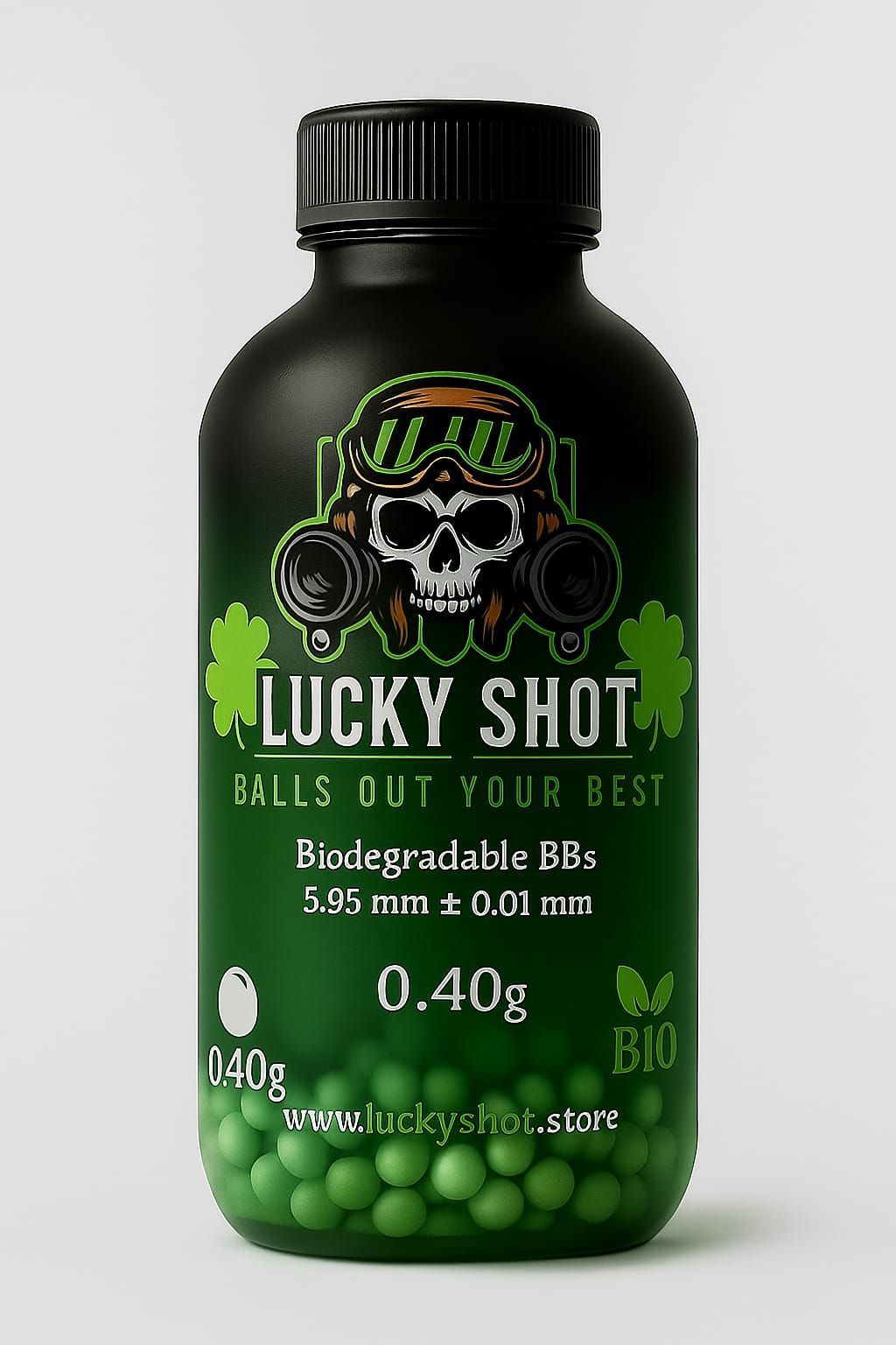 With Lucky Shot 0.40g Bio BBs you can shoot from the dark and kill in the light. Our BBs make sure to hit them where it hurts. Mentally mostly we hope...